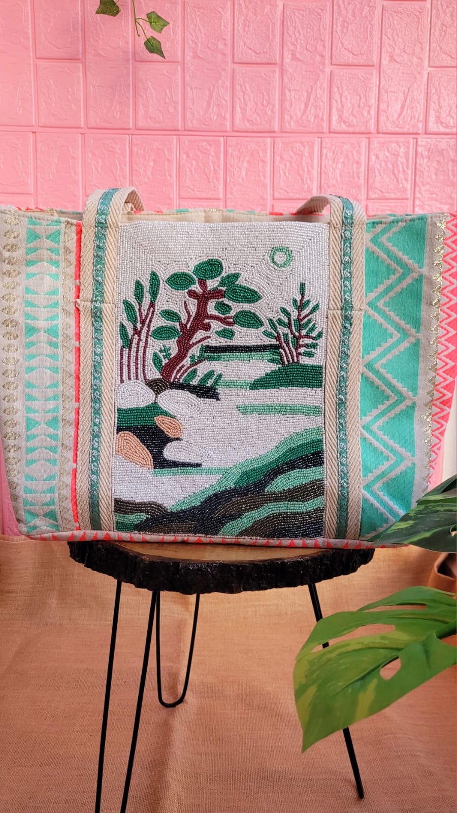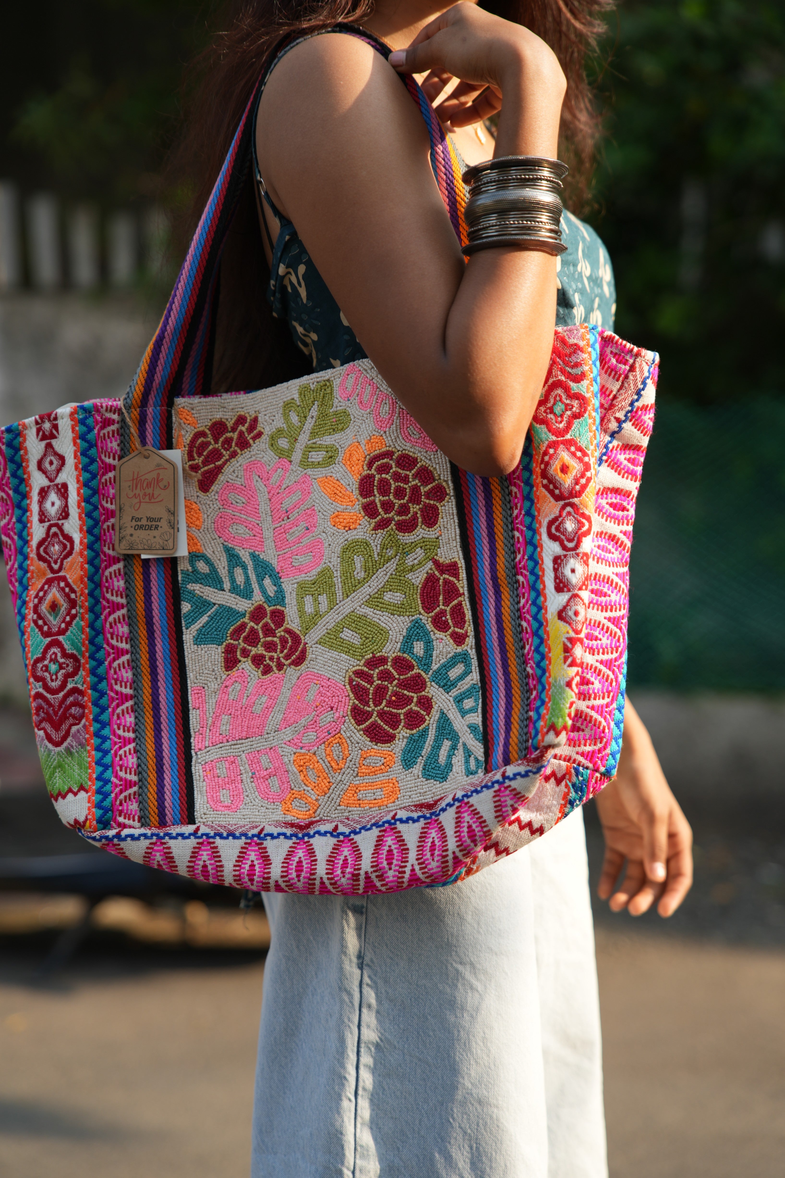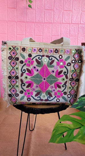 Boho fabric bags should be spot-cleaned using mild soap only. Avoid machine washing to maintain the bag's texture and design. Keep them away from sharp objects and store them flat or lightly stuffed to retain their shape.